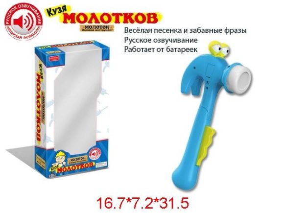 Кузей Молотковым зовут игрушечный молоточек, который понравится любому ребенку. Ведь он такой забавный! Если нажать на кнопочку, то молоточек "закивает" головой, а носик у молотка засветится. Игрушка "пропоет" песенку и "произнесет" забавные фразы.