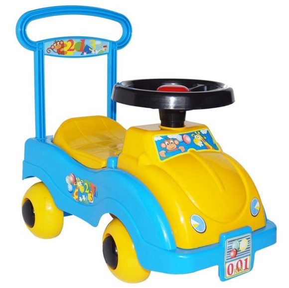 Эта симпатичная каталка в виде машинки - первое транспортное средство малыша. Ведь он еще так мал для велосипеда или самоката, а вот каталка подойдет в самый раз для подвижных игр на свежем воздухе или для игры в помещении. Каталку можно возить за собой с помощью удобной ручки или кататься сидя на ней и перебирая ножками. Поворачивая руль, ребенок может менять направление движения. Под сиденьем находится небольшой отсек, в который можно положить игрушки и другие необходимые мелочи.