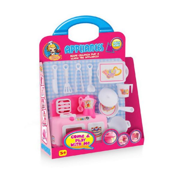 Питание: 2*АА (нет в комплекте). Подсветка: плита. Открывается дверка. В комплекте - посуда.