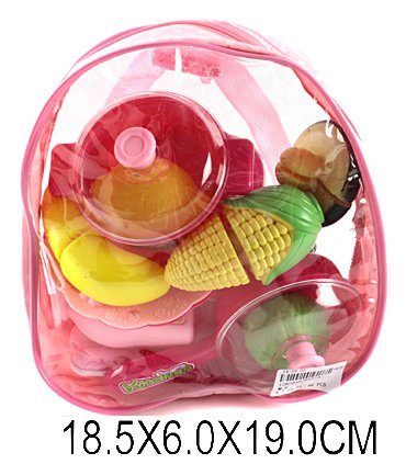 Набор продуктов и посуды - для увлекательной игры! Все продукты из набора состоят из двух частей, соединенных между собой липучками. Задача ребенка - разделить игрушечные продукты на части с помощью специального ножа. Этот набор прекрасно подходит для сюжетно-ролевой игры и способствует развитию моторики рук.
