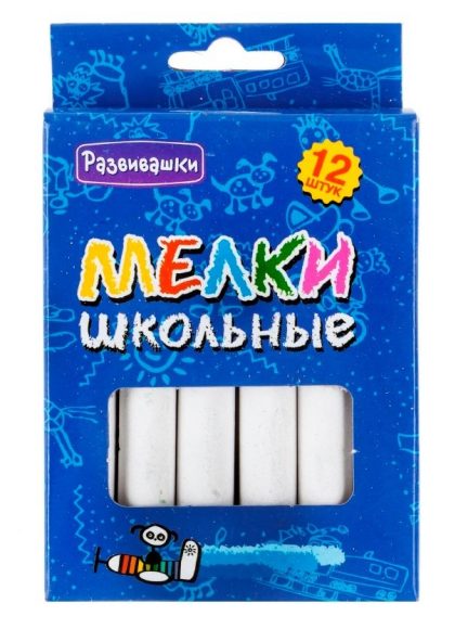 Мелки "Классика" подходят для использования как на досках , так и на асфальте или любых других поверхностях. В наборе 12 белых мелков, которые не крошатся и удобно лежат в руке. Мелки изготовлены из безопасных, нетоксичных и качественных материалов. Благодаря большой упаковке, мелков хватит надолго.