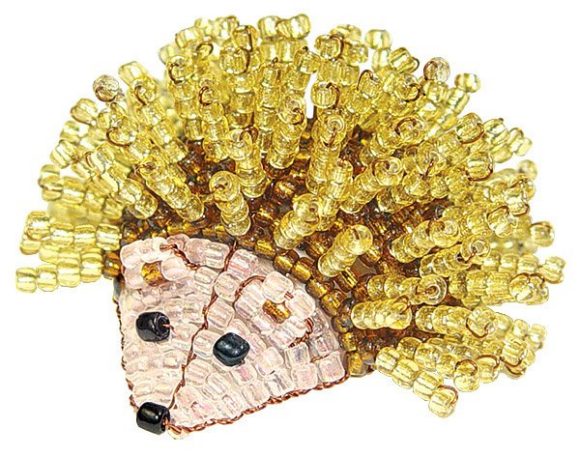 Какой трогательный маленький ёжик! Остренький носик, глазки-бусинки... а ведь глазки действительно сделаны из бусинок, да и весь ёжик сплетён на проволоке из бисера.