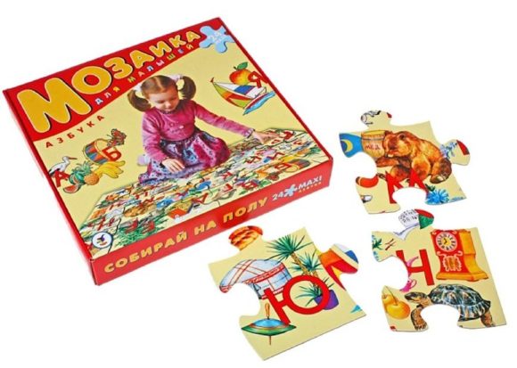 Крупные и яркие детали такой мозаики удобно собирать на полу. Ребенок научится складывать сюжетную картинку из нескольких частей и подбирать подходящие по форме недостающие фрагменты рисунка. Игра развивает зрительное восприятие, образное мышление и мелкую моторику рук, расширяет кругозор и знакомит малыша с буками русского алфавита. Размер собранного поля - 70 х 50 см.