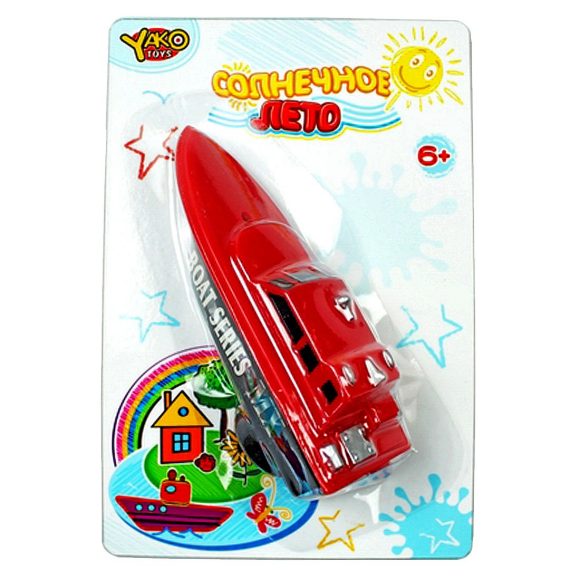 Механический водомётный двигатель. Заводится вытягиванием шнура. Размер катера: 13*4*4 см.