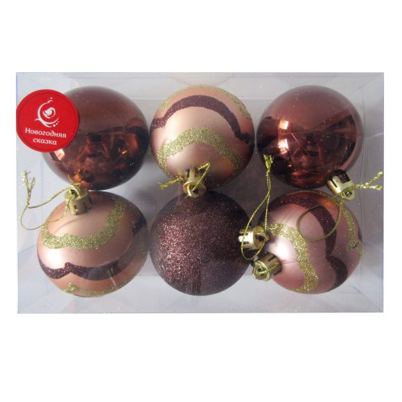 Декоративные елочные игрушки очень популярны! В набор входит 3 глянцевых и блестящих шарика шоколадного цвета и 3 матовых, цвета розового шампанского с узором. Елочные украшения идеально подойдут для оформления новогодней елки. А еще набор можно подарить друзьям в качестве новогоднего сувенира.